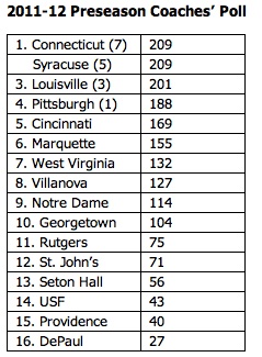 The results had Louisville as the top ranked team with 13 players finding their way in the top 1500. Cuse, Pitt and Cincy followed with UConn coming in fifth. Their ranking did not include the No. 1 recruit in the country though, freshman Andre Drummond who should make a big splash this season.