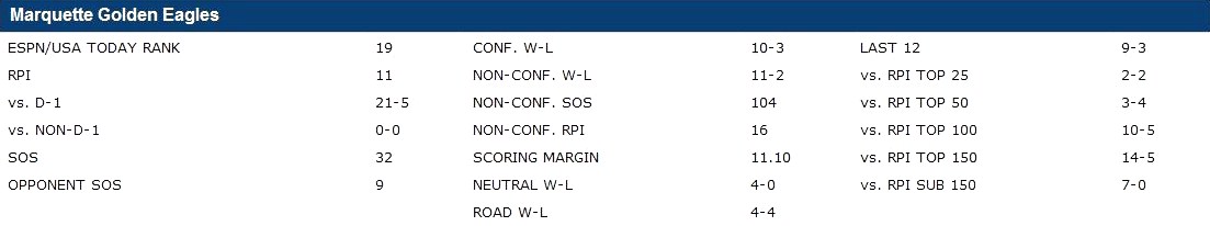 Here is Marquette’s remaining schedule, as well as those teams’ RPIs: