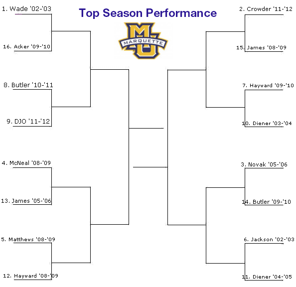1. Dwyane Wade (2002-2003) vs. 16. Maurice Acker (2009-2010)