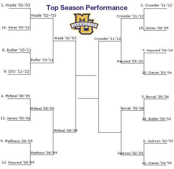 The case for Jackson: Dwyane wade cast quite a shadow in Milwaukee, but Jackson did a lot of the dirty work to get Marquette to the Final Four. He had eight double-doubles, including 24 points and 15 rebounds in the famous Elite Eight Kentucky game. He shot 56 percent from the field, an impressive 78 percent from the free throw line and was a monster on the glass. He was the prototypical center and big body that all teams need to advance in the NCAA Tournament, making his season one of the best the Golden Eagles have seen in the last decade.