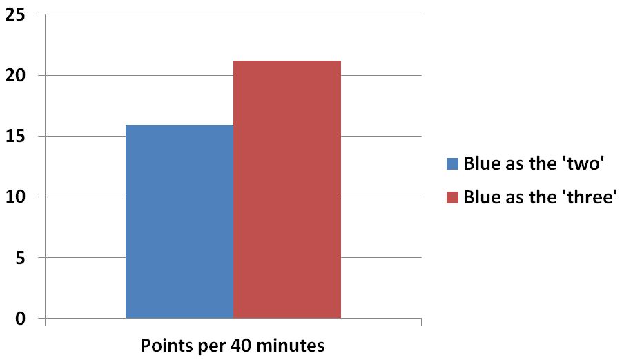 Vander Blue’s points per 40 minutes by position