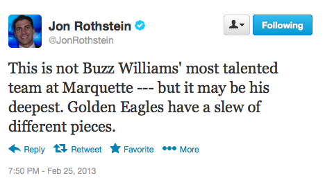 KJ: Some of Buzz’s juco’s came from diploma mills, and/or with credits that couldn’t transfer because Marquette did not have a…