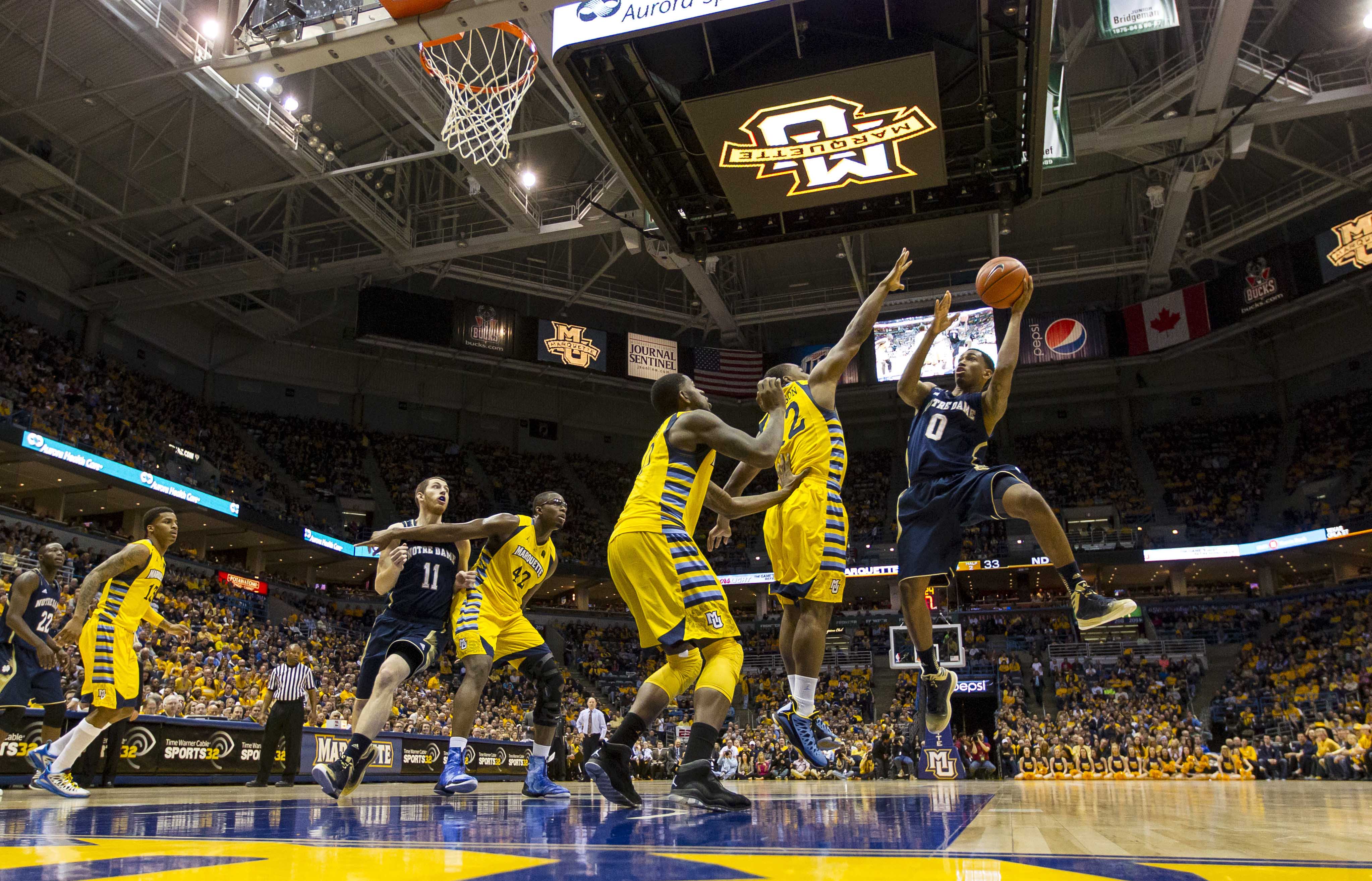 The other cog in head coach Mike Brey’s system who Marquette must prepare for is guard Jerian Grant, who was named, along with Vander Blue, to the Big East’s All-second team this week. He scored a game-high 21 points and added seven rebounds and five assists in the loss to Marquette, but also had five of the Irish’s turnovers. He averages 36.4 minutes per game, so pressuring him early and often might be the best bet to slowing him down late.
