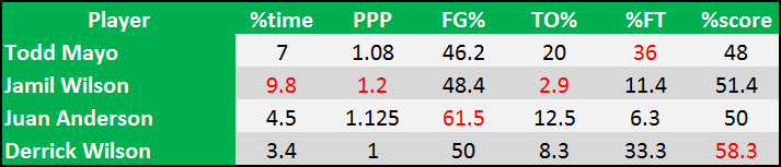 FB3Natural small forwards Jamil Wilson and Juan Anderson were thrown in, but the majority of fast-break attempts will come from one of Mayo, either freshman or even Derrick Wilson. Cadougan certainly helped Marquette’s (and Blue’s) numbers on the break and, as well as the PG Wilson may improve as a junior, it won’t match what Cadougan did.