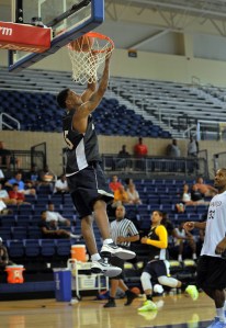 Avery Smith dunks at the Milwaukee Summer Pro-Am Basketball League