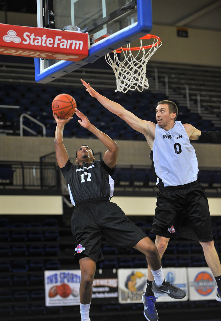 Myles McKay goes to the hoop at the Milwaukee Summer Pro-Am Basketball League
