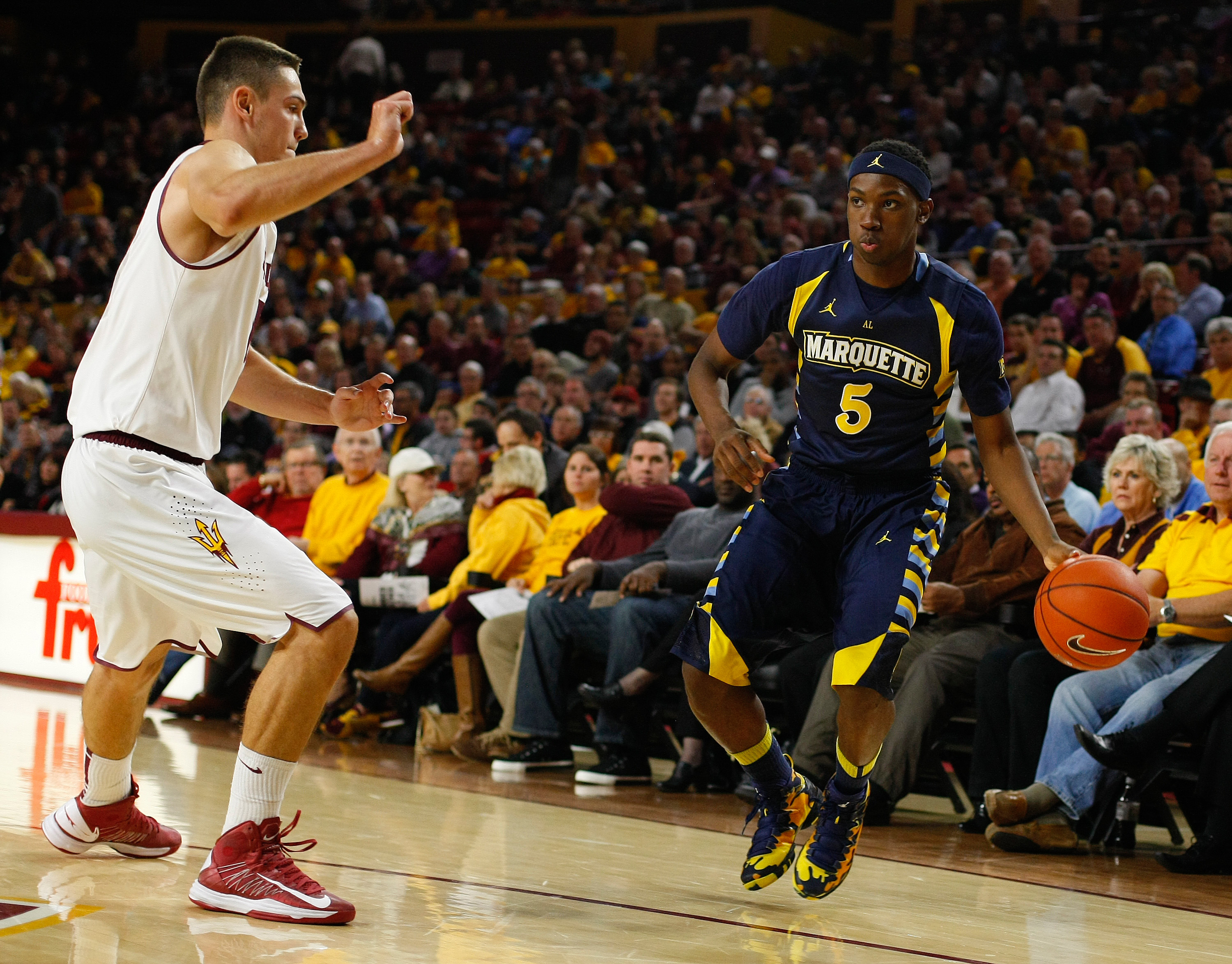 Playing without leading scorer Todd Mayo, the Golden Eagles hung with the 6-0 Sun Devils and actually took the lead in the second half after trailing by as many as 15 before halftime. But missed shots from Jake Thomas and Derrick Wilson in the final 30 seconds sealed the victory for Herb Sendek’s group, and leaving Marquette at 3-2 for the first time in a long time to begin a season.