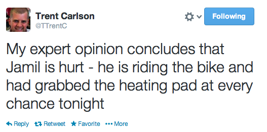 Chris Mauri: Do you think Ross is hurt? We’ve heard nothing but his shot is obviously off, his lift is diminished and…
