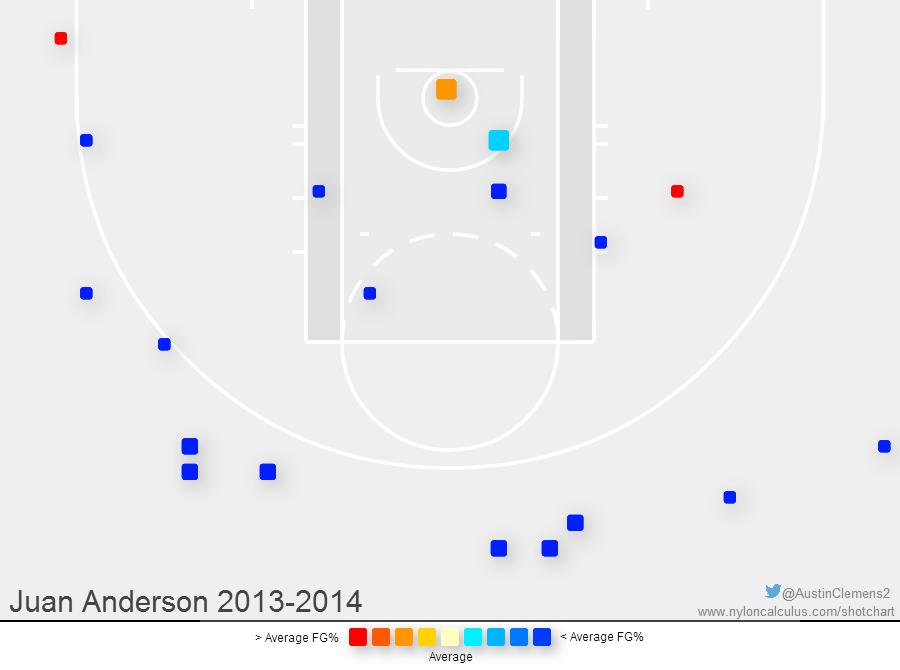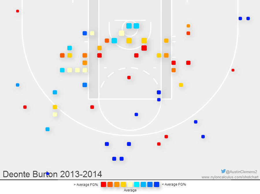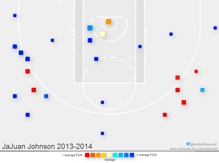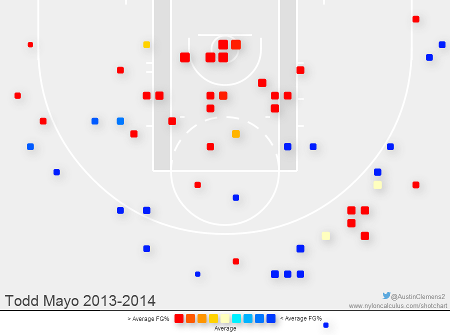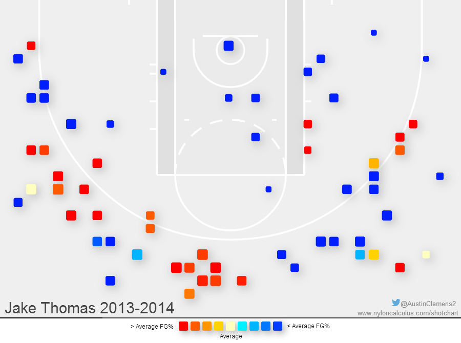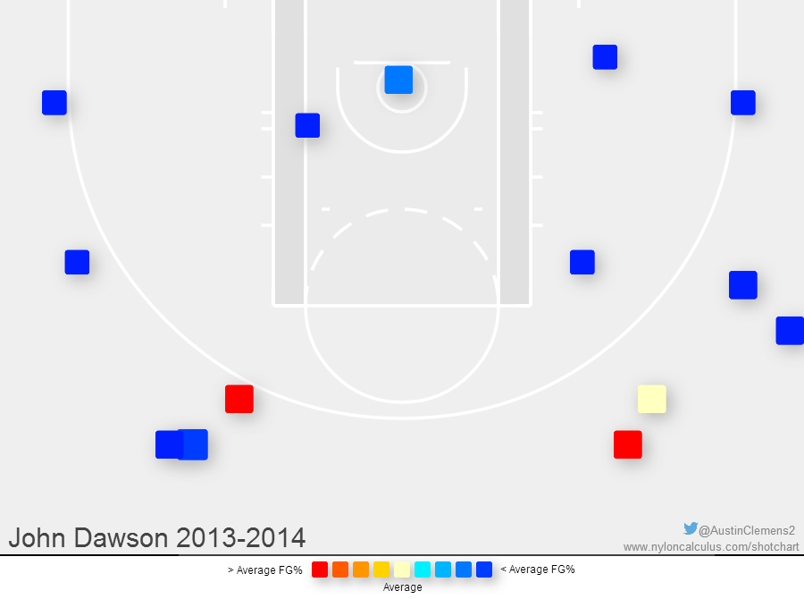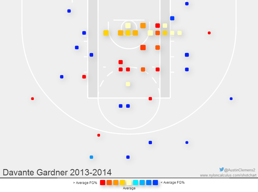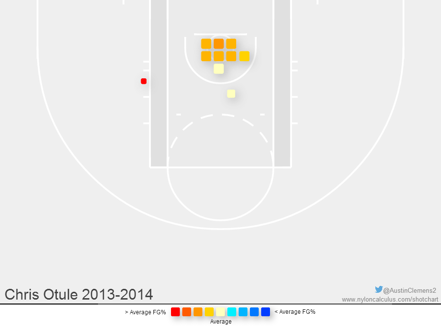 Tracking every player’s shot chart is something I’ve intended to do for three years now, but it is tedious, labor-intensive work that isn’t conducive to a guy with a non-sports job and a family. As such, it never materialized. Lucky for me, Nylon Calculus did all the hard work of gathering stats and presenting it in a easily digestible manner.