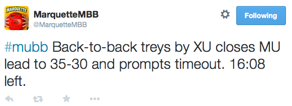 You are here: Home » Twitter Reactions: Marquette falls at Xavier » Screen shot 2015-01-17 at 1.08.47 PM