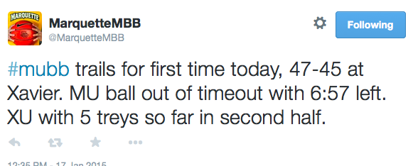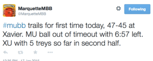You are here: Home » Twitter Reactions: Marquette falls at Xavier » Screen shot 2015-01-17 at 1.36.24 PM