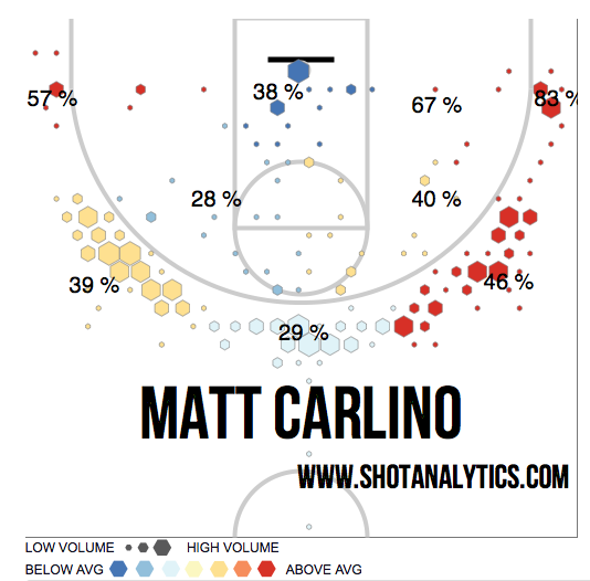 For as many times as Carlino made fans pull their hair out with questionable shot selection, he made up for with ridiculous makes. His coming out party against Georgia Tech lit the scoreboard with 38 points on 8 made 3-pointers. He was definitely a streaky shooter, but his 89 makes were the most by any Golden Eagle since Steve Novak, and done on 41.9% shooting. Enjoy this shot chart, it won’t be seen for a while.