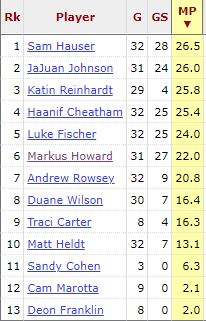 I usually try not to fall in that same hype cycle, but as stated in the opening graphs, I just don’t have a good feel for the rotation. The last time Marquette had so much offensive equality was 2017, and this is how the minutes shook out that season.