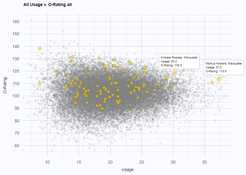 Markus, rightfully, took it to the next level the past two years, reaching levels of usage (uber usage at 32%+) no Marquette player, and very few players nationally had ever reached.