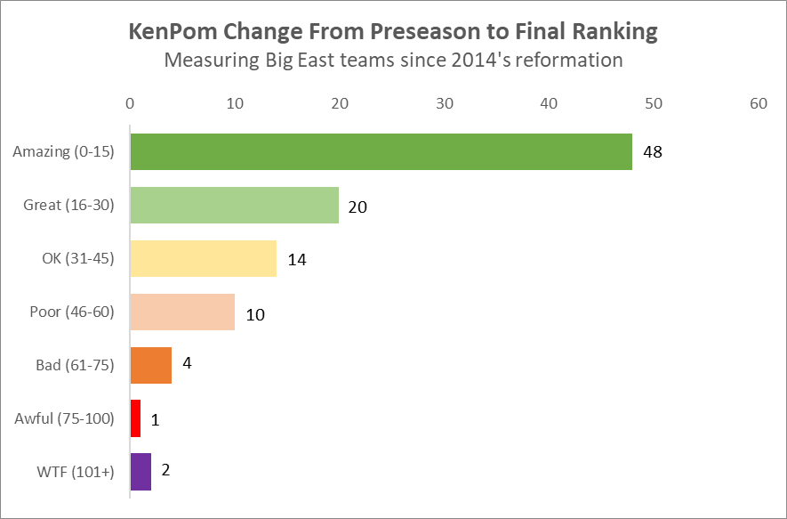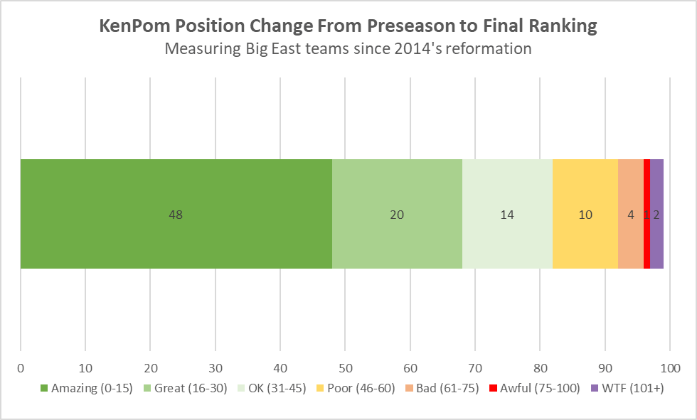 Without delving into all of the reasons why this is a steaming dump of a take from a process point of view, it did pique some curiosity as to how the preseason projections had held up over a longer period of time than one season, for a sample like the Big East.