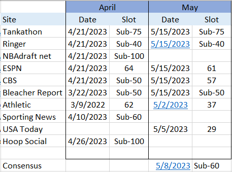 The full consensus, which tool over 150 sources, however, still had him in the undrafted stage (and still does as of May 17th). This is all to say, OMax wasn’t some trendy entrant generating lots of buzz.