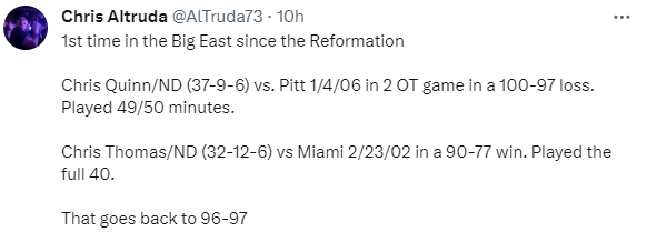 Stat man Chris Altruda did some additional digging and found that this stat line has only been matched twice by Big East players since 1997.