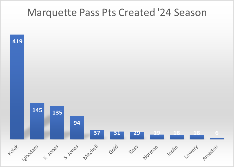 He’s up to 419 passing points this season, and that’s with MU’s shooting touch missing from 3 this season. His value to Marquette is just so absurdly large.