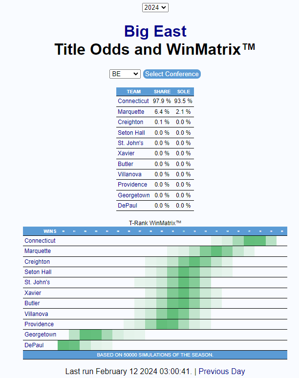 Somehow we are in mid February already, and with Marquette two games behind UConn, this is a week that will go a long way to shaking our whether a regular season repeat is still feasible.