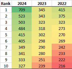 Going past the top 10, there were 30 individual games that topped 200K in 2024, compared to 20 in 2023 and 16 in 2022. Sure, 200K is an arbitrary cutoff, and not a particularly large number, but this shows a fairly significant movement for the conference as a whole. It matters greatly.