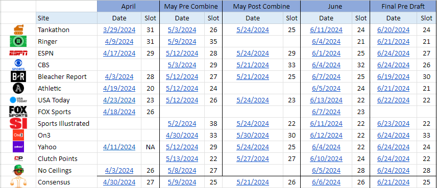 The All-American point guard’s draft process has been extremely positive over the last 2.5 months, maintaining a mid-to-late first round projection over most outlets in that time frame, ranking as high as 21 in The Ringer’s Big Board, with only 1 2nd round grade from On 3.