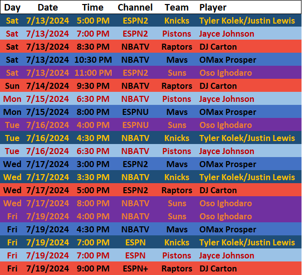 In the interest of making it a bit easier to follow their games, I built a quick guide for when and where to watch the next week or so. All times are in Eastern.