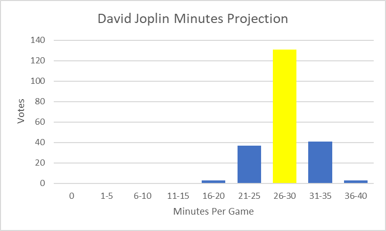 Joplin’s vote tally for 26-30 minutes was the 2nd most common response among all players, as 60.9% of respondents believe he’ll once again finish averaging 26-30 minutes a game, like last season’s 27.7.