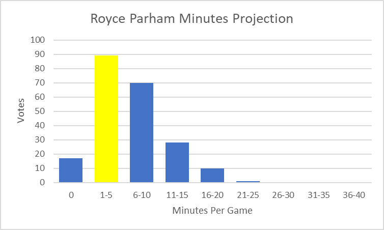 Parham’s 1-5 minutes a game vote was the 5th largest tally, which surprised me quite a bit, as I usually expect a wider distribution for freshmen.