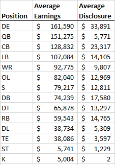 Filtering the database by position, here are the average P4 NIL earnings by position.