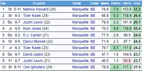 But we already knew that and we don’t really need a deep dive to tell us what the eye could clearly see. What we do want to use advanced data for isn’t what is obvious, but instead to what is yet to be. Mainly, what will Marquette’s offense look like like without two of the best creators in MU history?