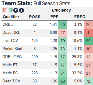And one more note about the value of the kind of turnover Chase helps to create. Live ball turnovers are those like steals, where the whistle doesn’t blow and opponents don’t have time to reset. These are a huge boon for an offense, because it kickstarts transition opportunities against unbalanced defenses.