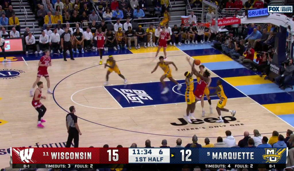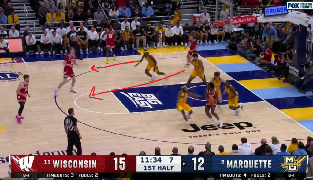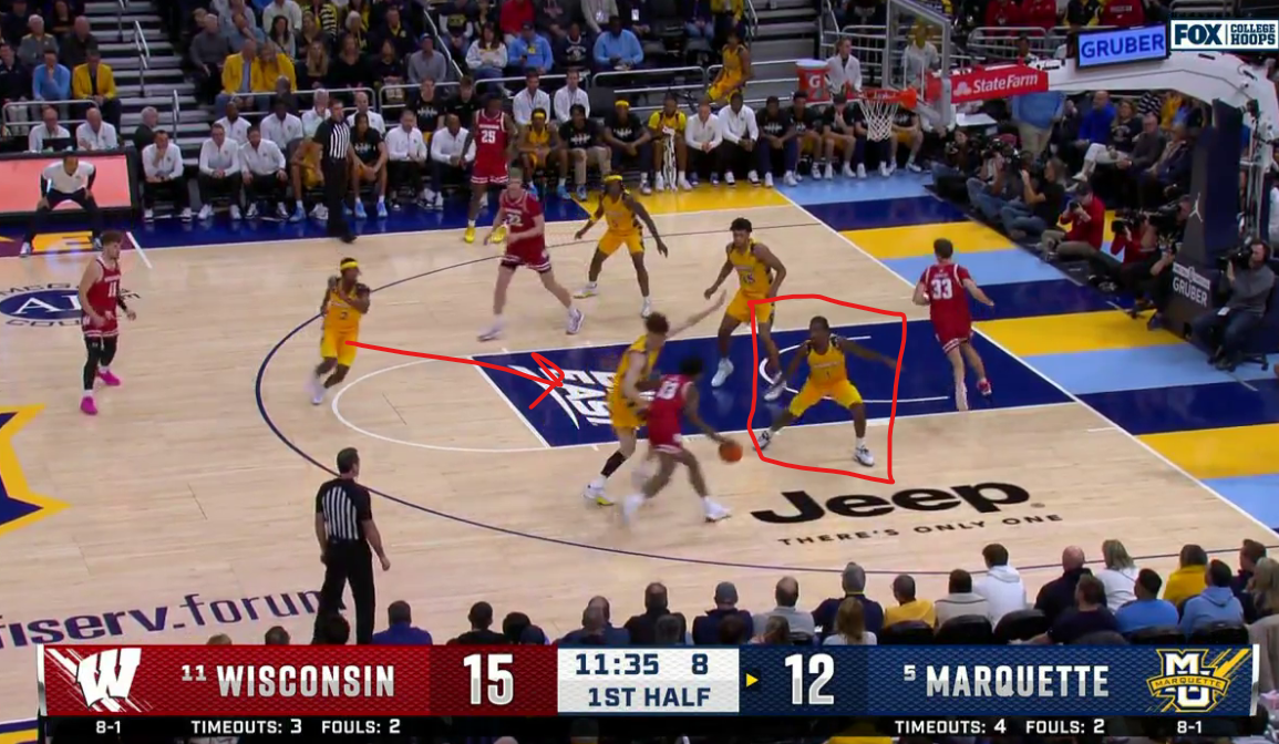 There was plenty of risk involved, as Klesmit burned Marquette from deep all game, but Tre and Caedin immediately recognize they are needed, and start covering for both players on the perimeter.