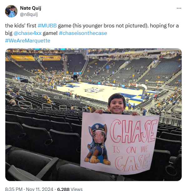 So you’ll imagine my shock when I opened my phone midway through the second half and not only saw Chase filling up the boxscore, he was already leading Marquette in minutes played. Sure enough, he ended up with 2 steals and 8 rebounds in a team leading 36 minutes.