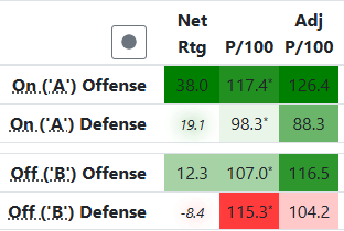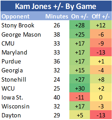 The only thing I’ll add, Marquette needs him at this ridiculously high level to be good. With him on the court, Marquette has outscored opponents by 187 points. With him off the court, Marquette has been outscored by 25.