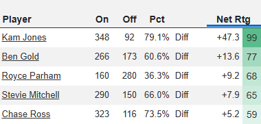 Against the best opposition Marquette has faced (top-150 opponents), MU is 3 times better with Gold on than with him off the floor, even filtering out garbage time.