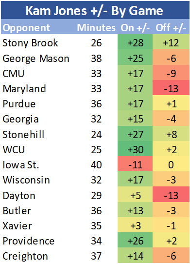When you adjust for opponent quality and take out garbage time, the numbers get even more stark. In the 147 possessions without Kam, Marquette is -16.0 per 100 possessions, per Hoop-Explorer, which is akin to the 313th best team in the country.