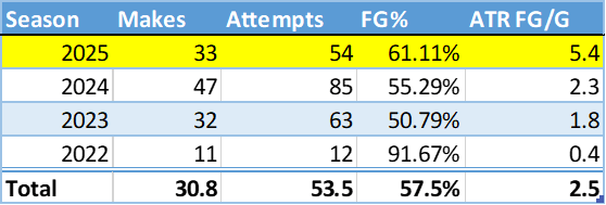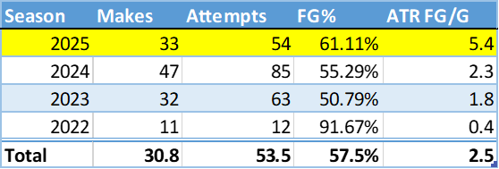 And the thing that has stuck out the most to me is his ability to get to the free throw line, where he has career highs in percent of his shots now coming from the line compared to from the field. And he’s shooting over 80% when there. This newfound ability to create contact down low has helped bring his field goal percentage to career best levels (2022 tiny samples not withstanding), as those contested misses now are dropped from the tally.