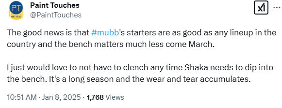 Me, I’ll continue to stay trusting a process that has Marquette ranked 7th in the country in combined offensive and defensive shot quality. Kam is returning to All-American form. At some point reversion to the mean will come from distance. There is too much history. Add in the reps and fresh legs from 2 reliable players, and there is plenty to hold on to if you still think, like me, this team is a 2nd weekend+ team.