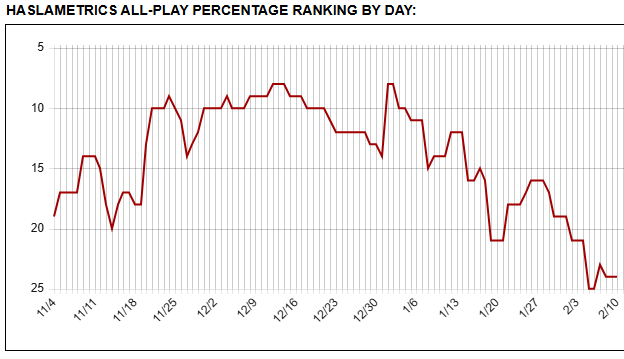 Haslam Metrics has a great visual representation of this, where you can see Marquette went from a top-10 team to one closer to 25.