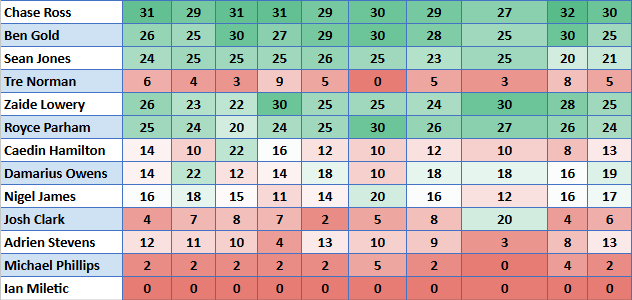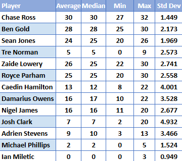 But outside of the outliers, this does show what I think is a great baseline expectation for each player’s role.