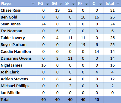 Someone expects Zaide to lead the team in minutes? Josh Clark with 20 minutes?? Tre Norman with 0???