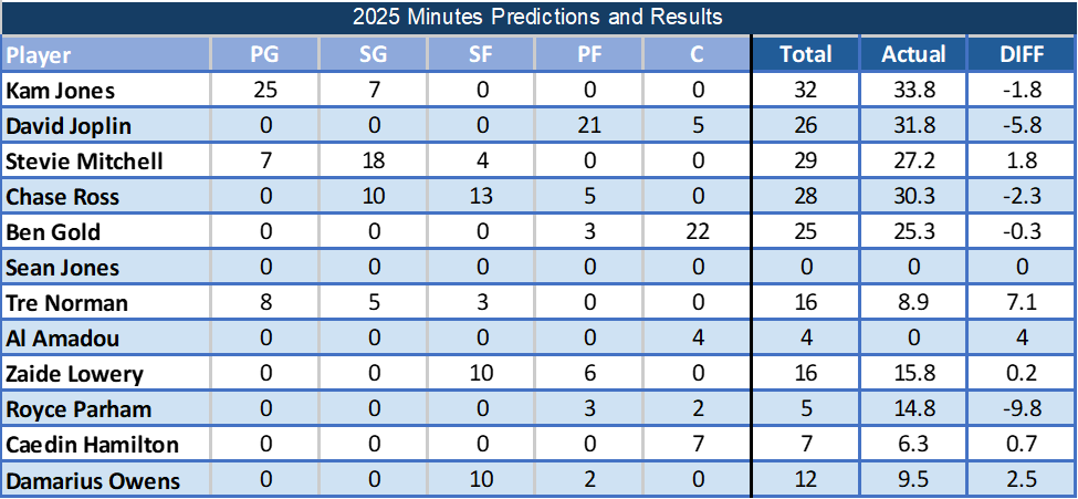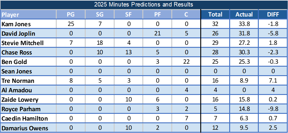 And what it shows is that I completely whiffed on Royce’s projection, undersold Jop’s contributions, and greatly overvalued Tre’s minutes, particularly as the backup PG. Take a look.