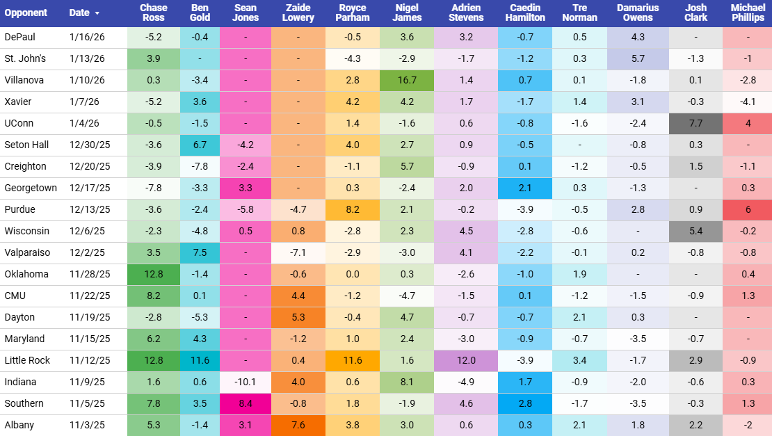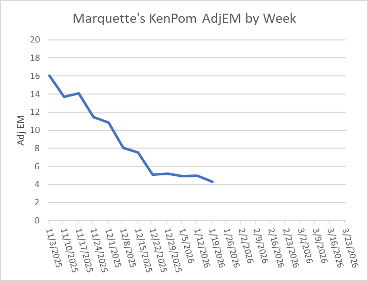 From a numbers perspective, Marquette moved down 0.69 points in AdjEM for a new low this season.