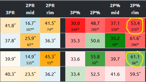 But thanks to Royce and Nigel, and improvements for Ben and Damarius, we’ve seen a huge leap on finishing at the rim, from 53.4% to 61.1%.