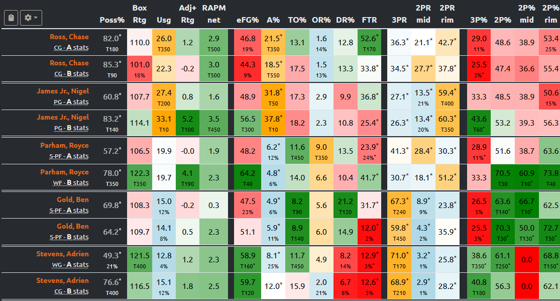 Royce Parham has been playing at an all-league level offensively for just under 2 months. Adrien Stevens would be getting 2,000 word deep dives every other month from me in just about any other season, if it wasn’t for Nigel, and has become a 2-way staple.