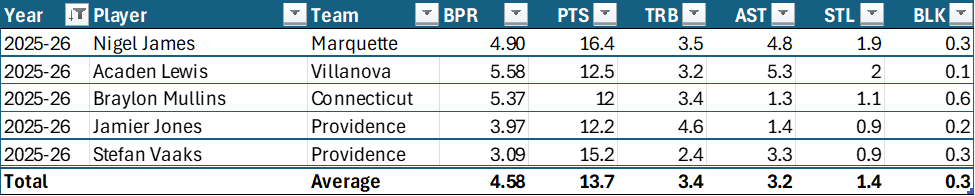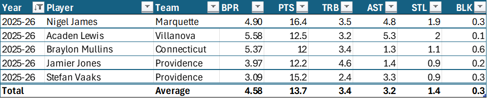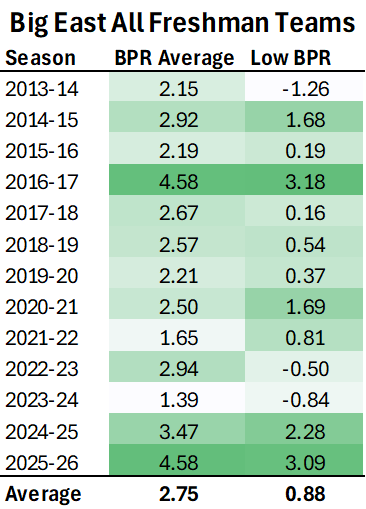 In pulling all these numbers, I came across another hypothesis, this may have been the best group of freshmen we’ve seen since the Big East Reformation in the 2014 season.