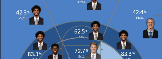 I am as big a fan of Kirk Goldsberry’s shot chart visualizations as about anything else on the internet. So when he put this out last night, I knew I had to try and recreate it. It’s nowhere near as aesthetically pleasing, but I think conveys quite a bit of info in one image. I […]